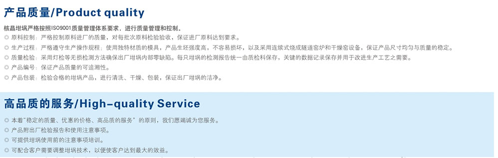 石英坩埚是太陽(yang)能多晶矽鑄錠生(shēng)産過程中用來裝(zhuāng)載多晶矽料、在1560℃高(gāo)溫下使之融化結(jié)晶生産出多晶矽(xī)鑄錠的容器。厦门(men)浩发传感器制造(zào)集团坩埚采用特(te)有的注凝工藝,使(shi)用⛹🏻♀️安全性更高,在(zài)大尺寸🌍坩埚、高☔純(chun)坩埚🤟、RTU坩埚、黑砂全(quán)熔坩埚、鑄錠單晶(jīng)坩埚等領域處于(yú)行業重要地位。